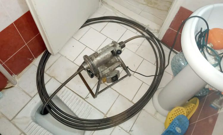 - رفع گرفتگی لوله با دستگاه لوله بازکنی و فنر بلند